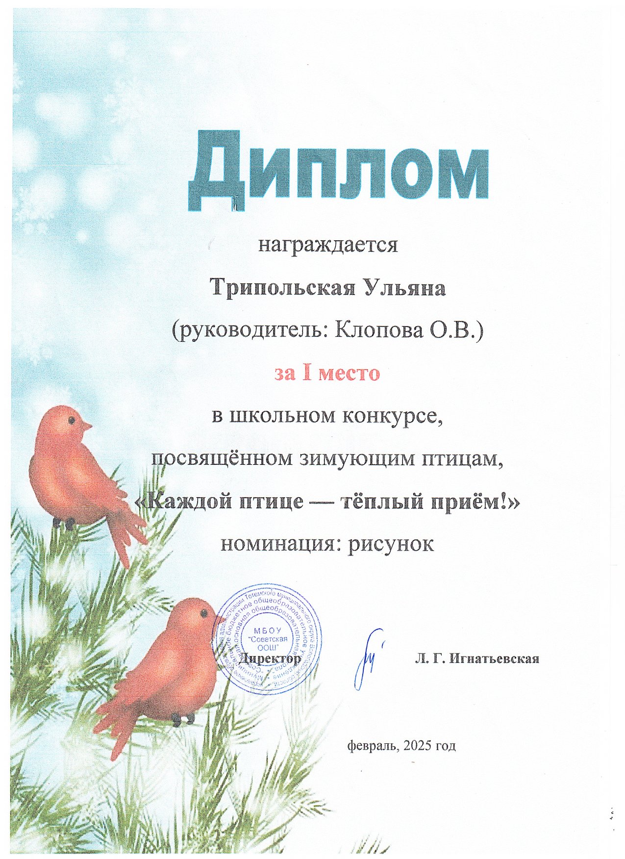 Школьный конкурс "Каждой птице - теплый прием!" (февраль 2025 года)