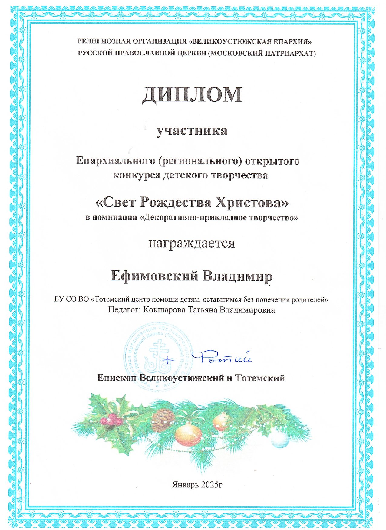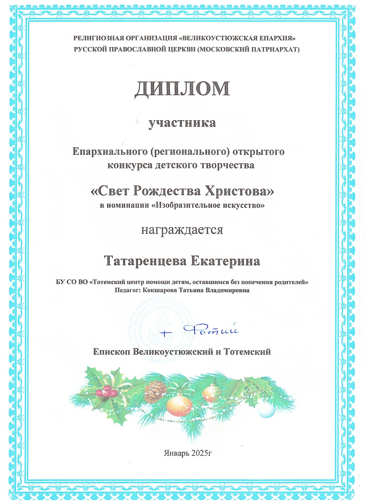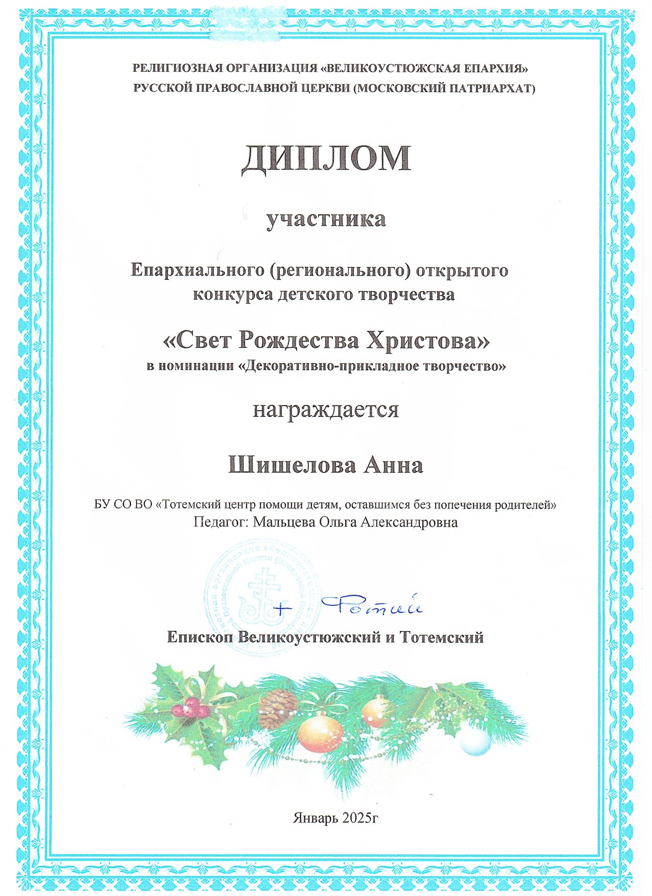 Конкурс детского творчества "Свет Рождества Христова" (январь 2025 года)