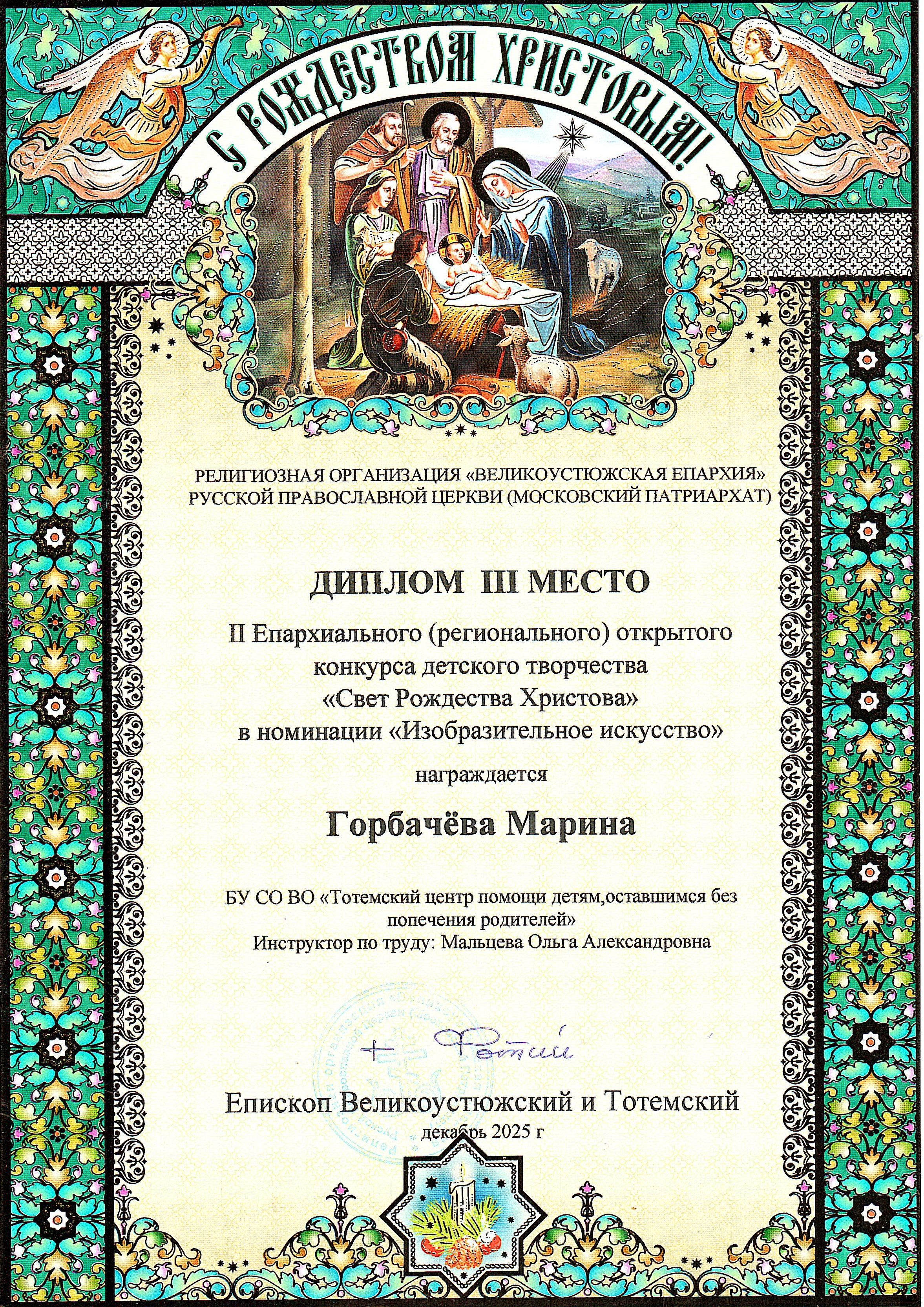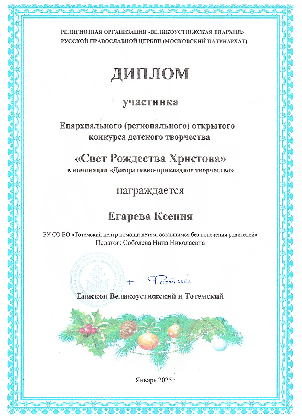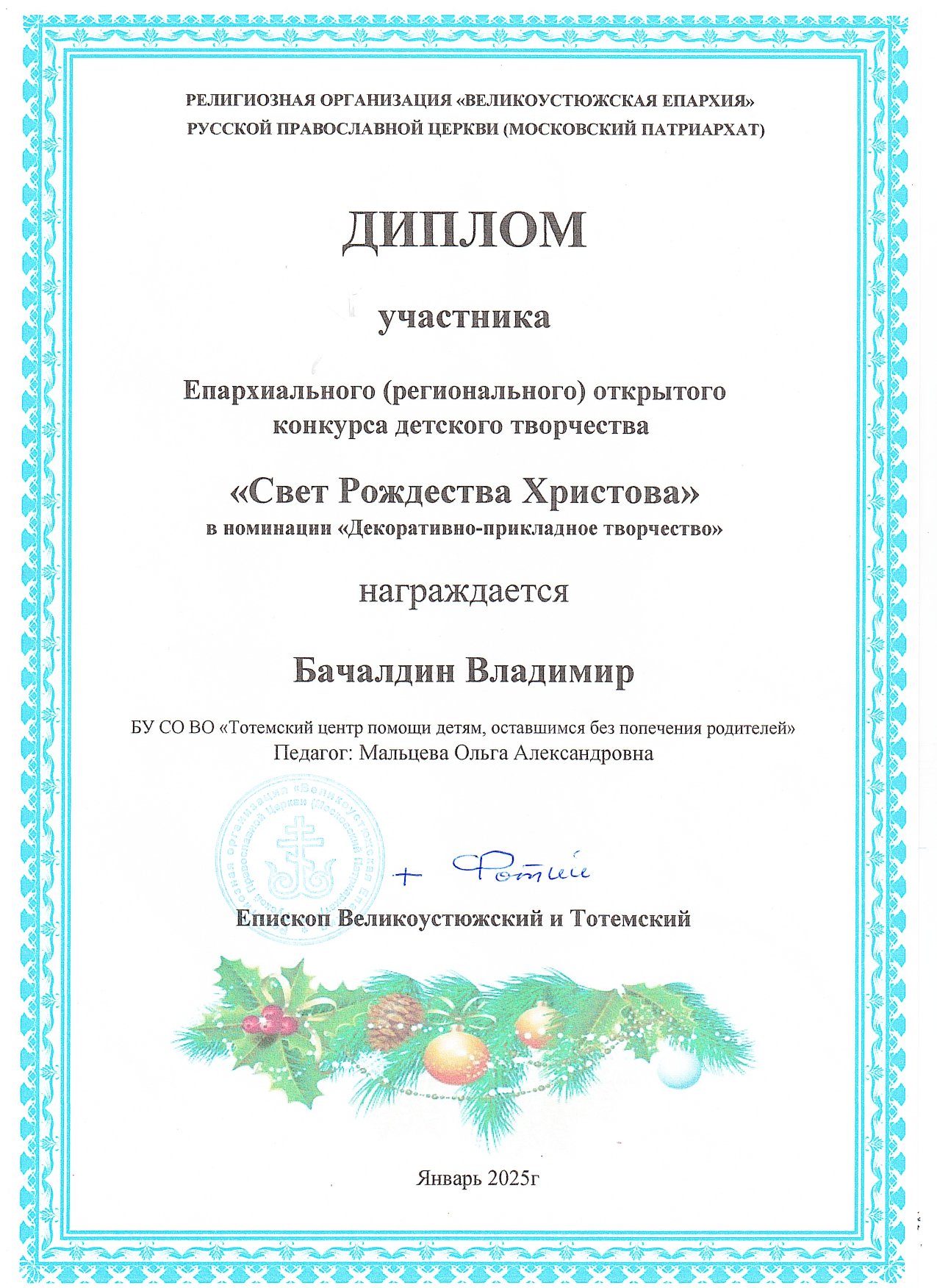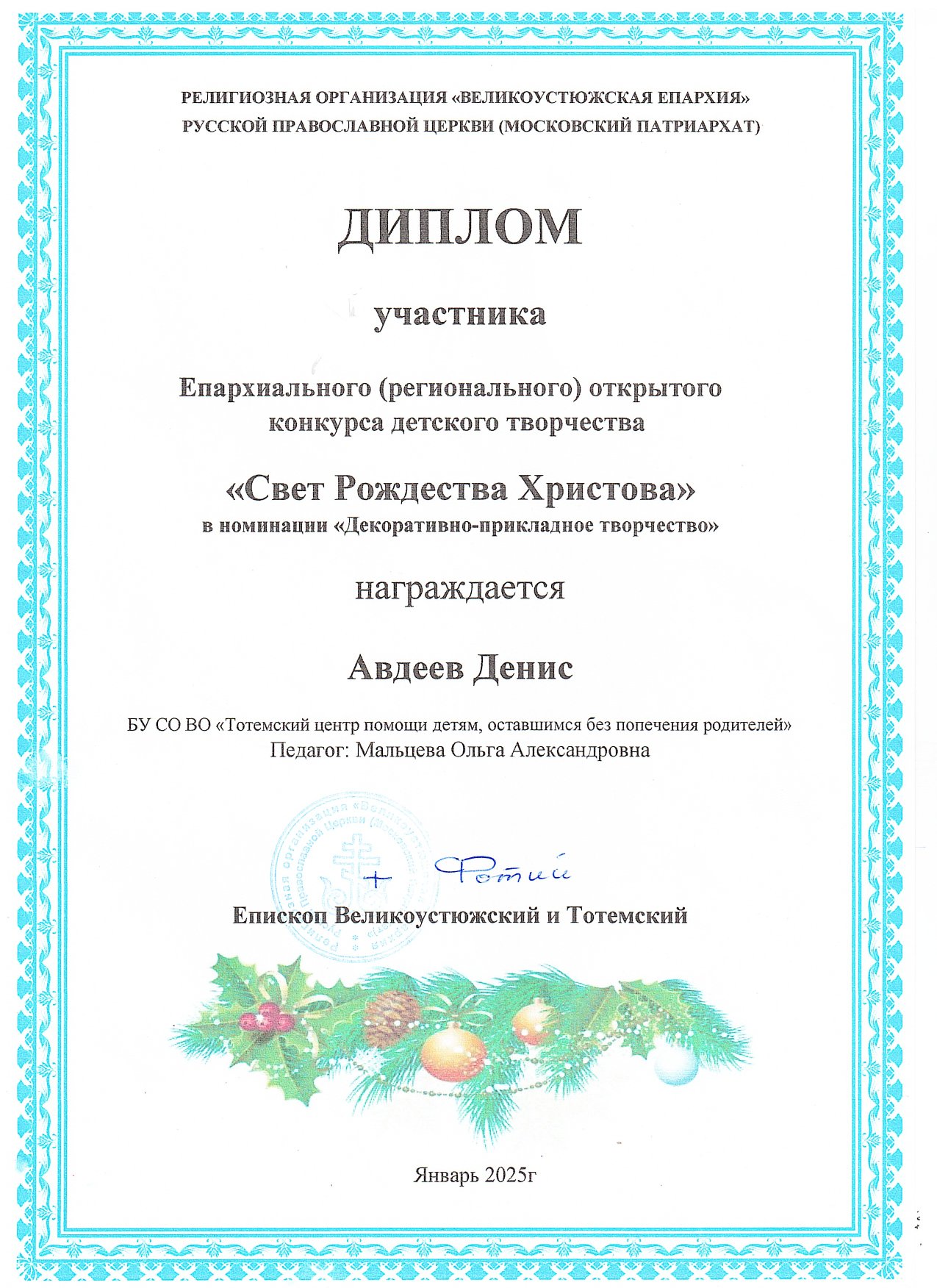 Конкурс детского творчества "Свет Рождества Христова" (январь 2025 года)