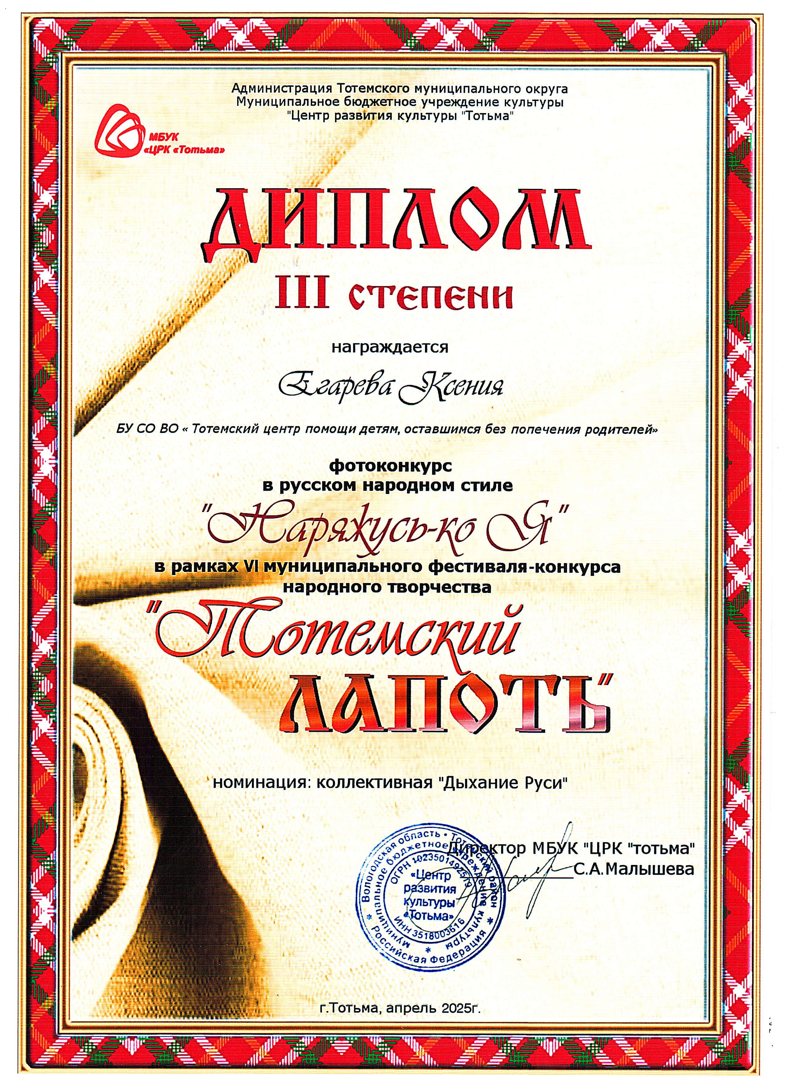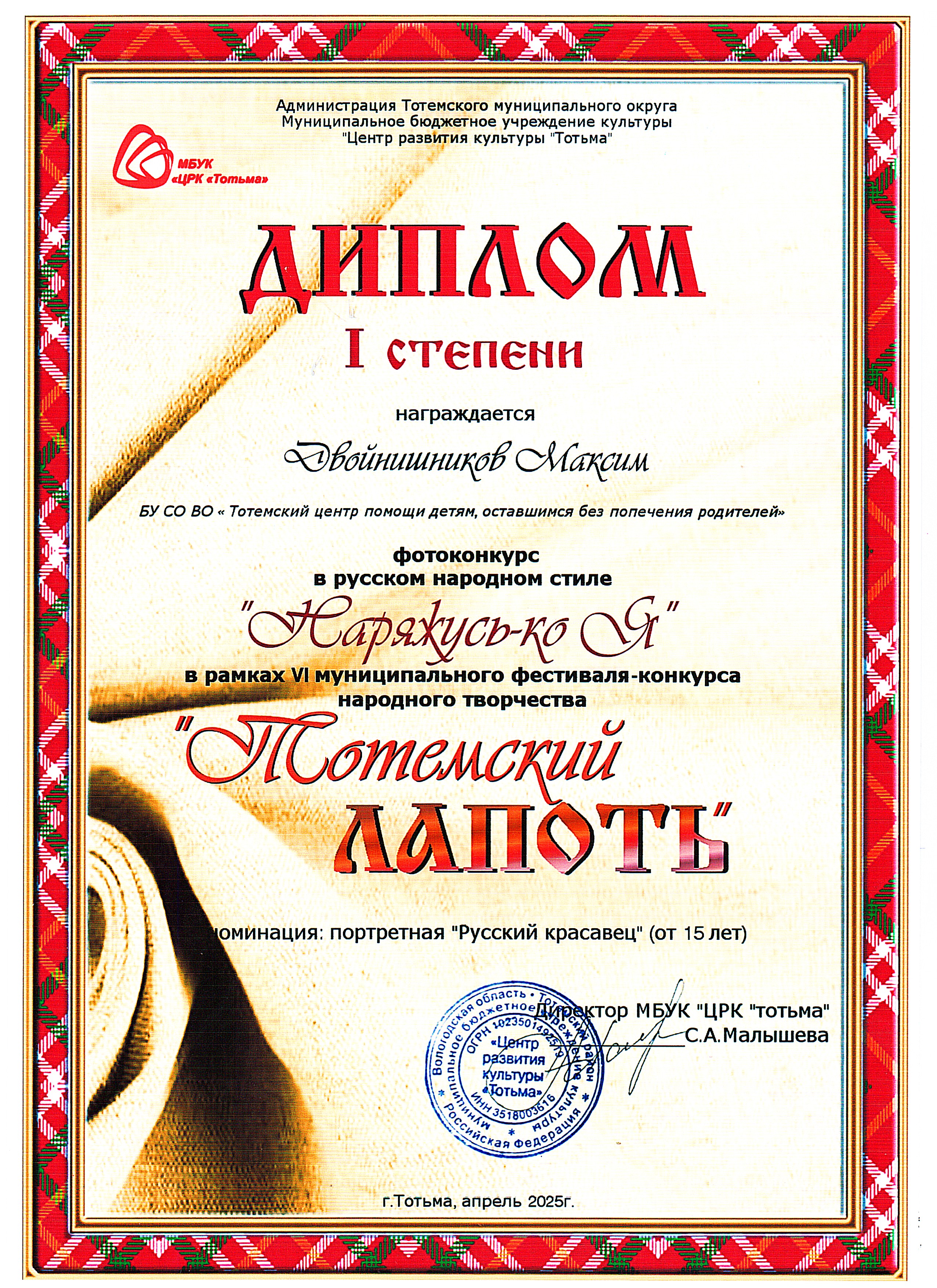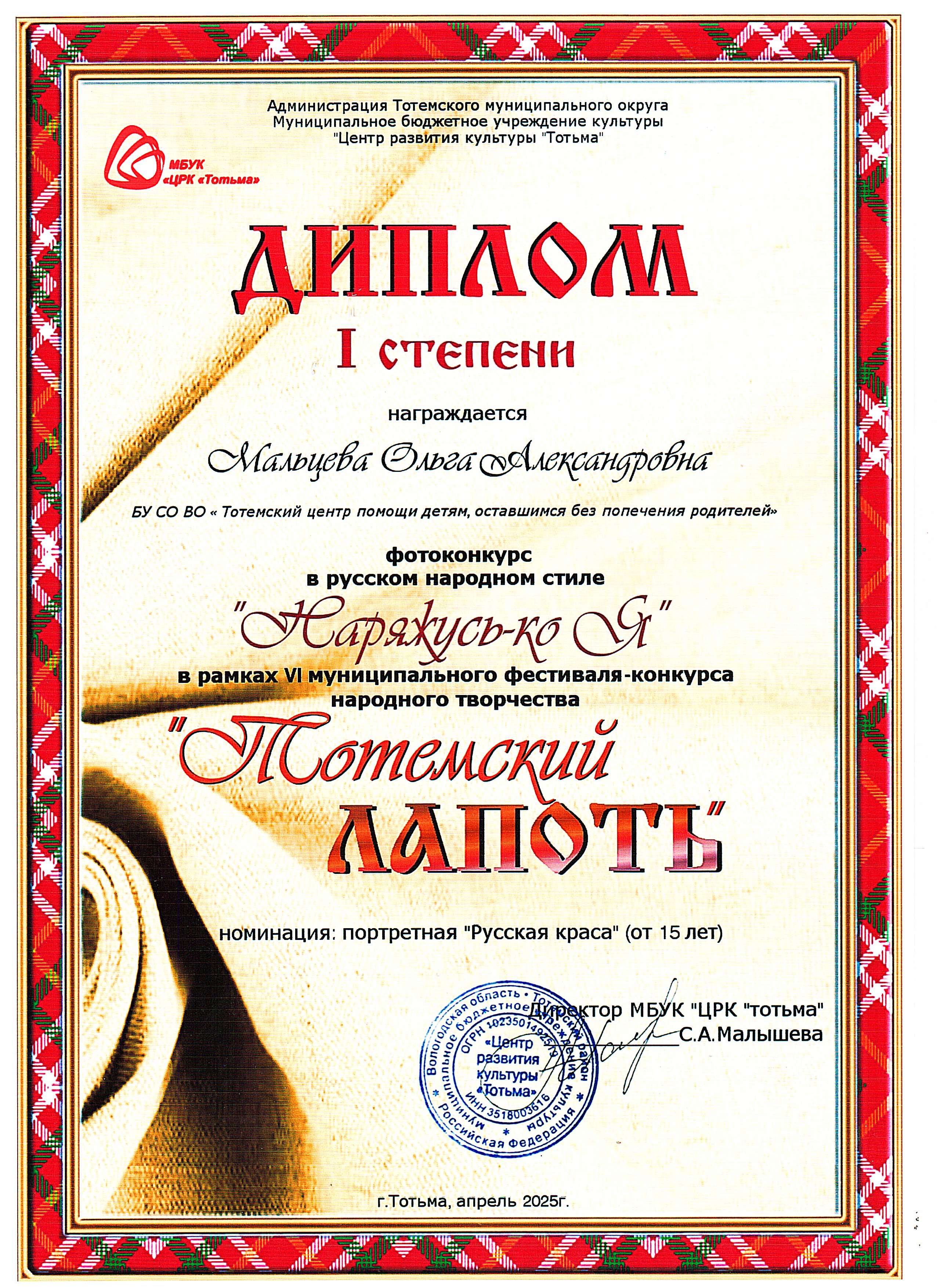 Фотоконкурс в русском народном стиле "Наряжусь-ко Я" (Тотьма, апрель 2025 год)