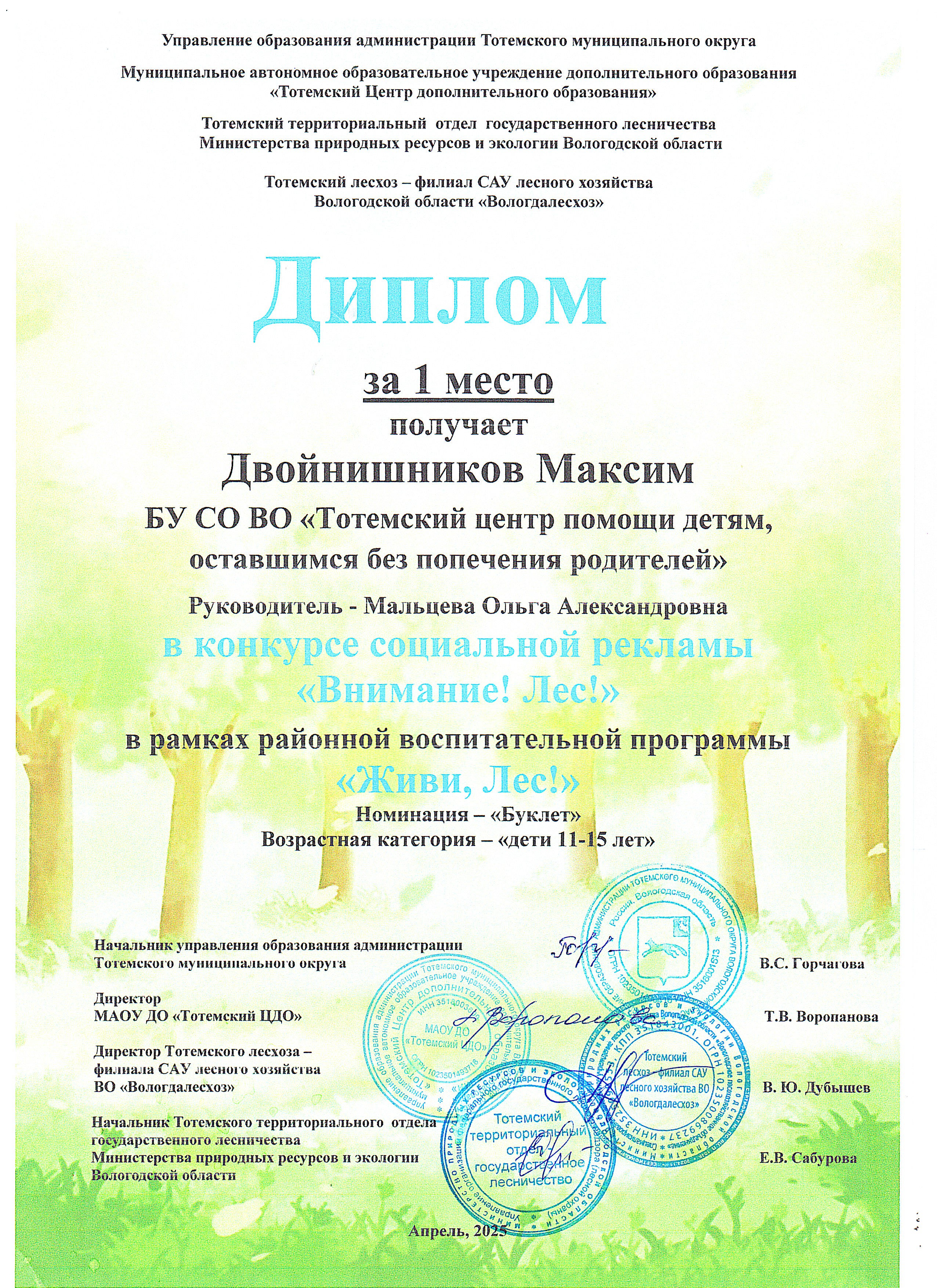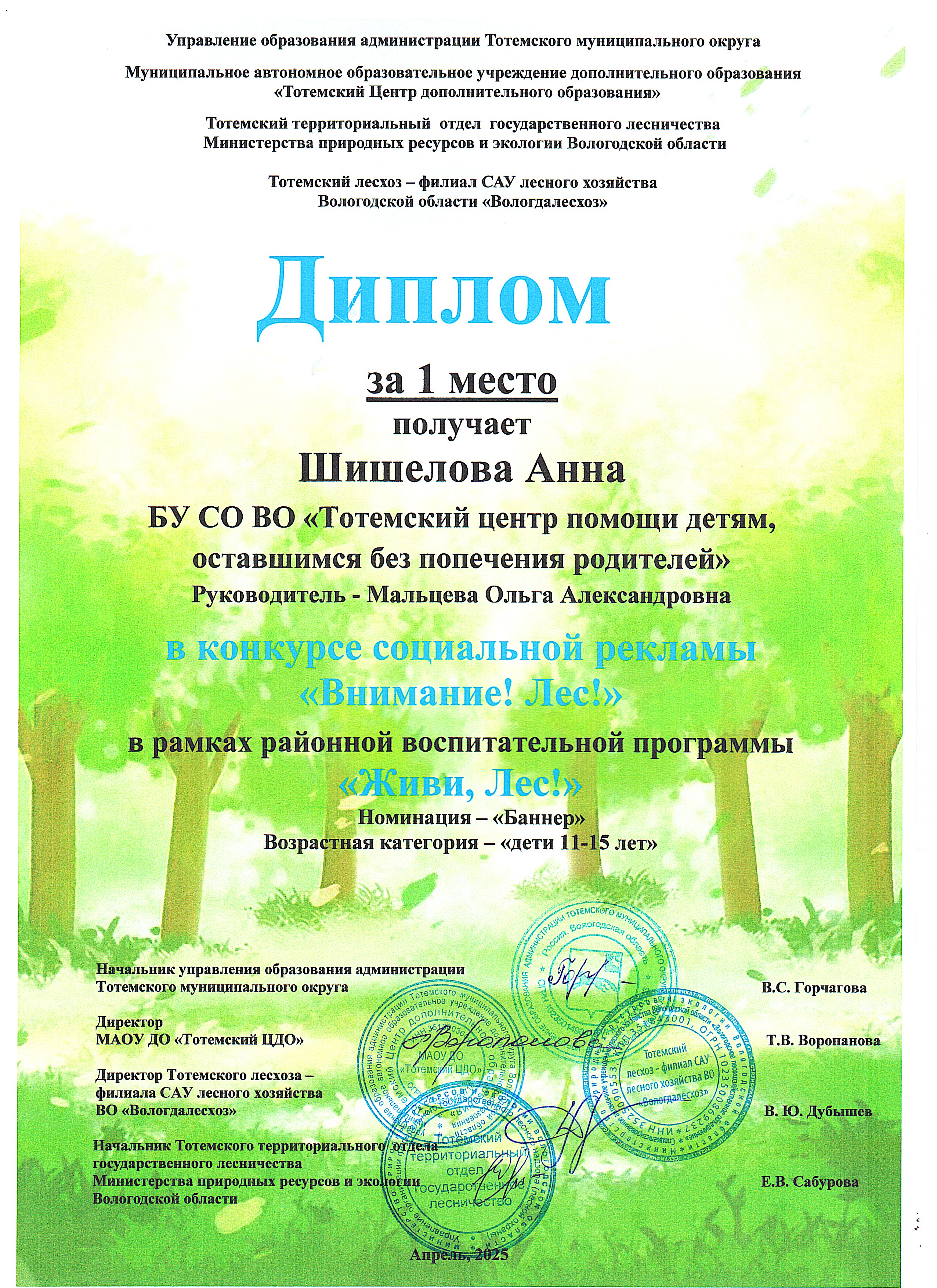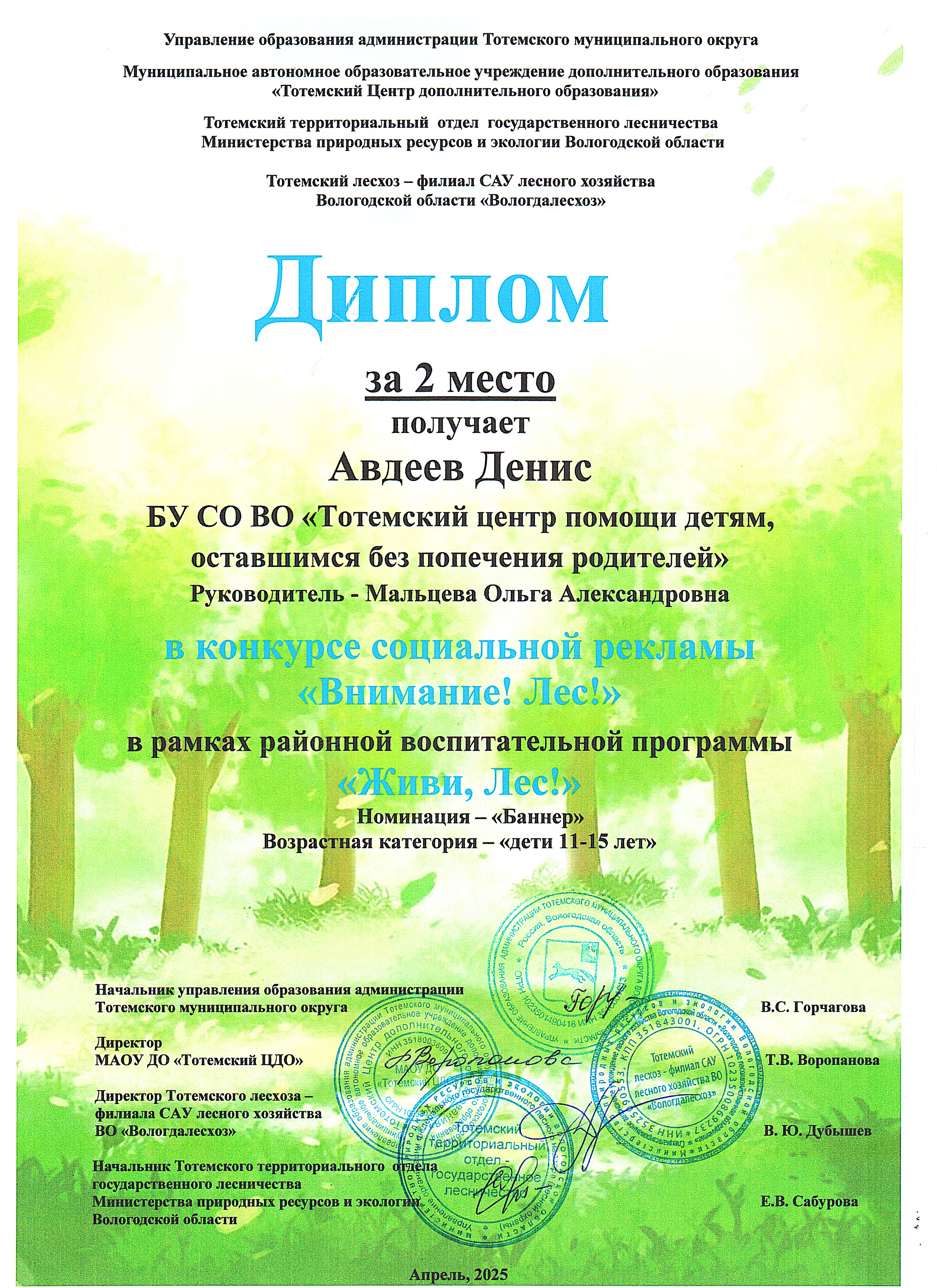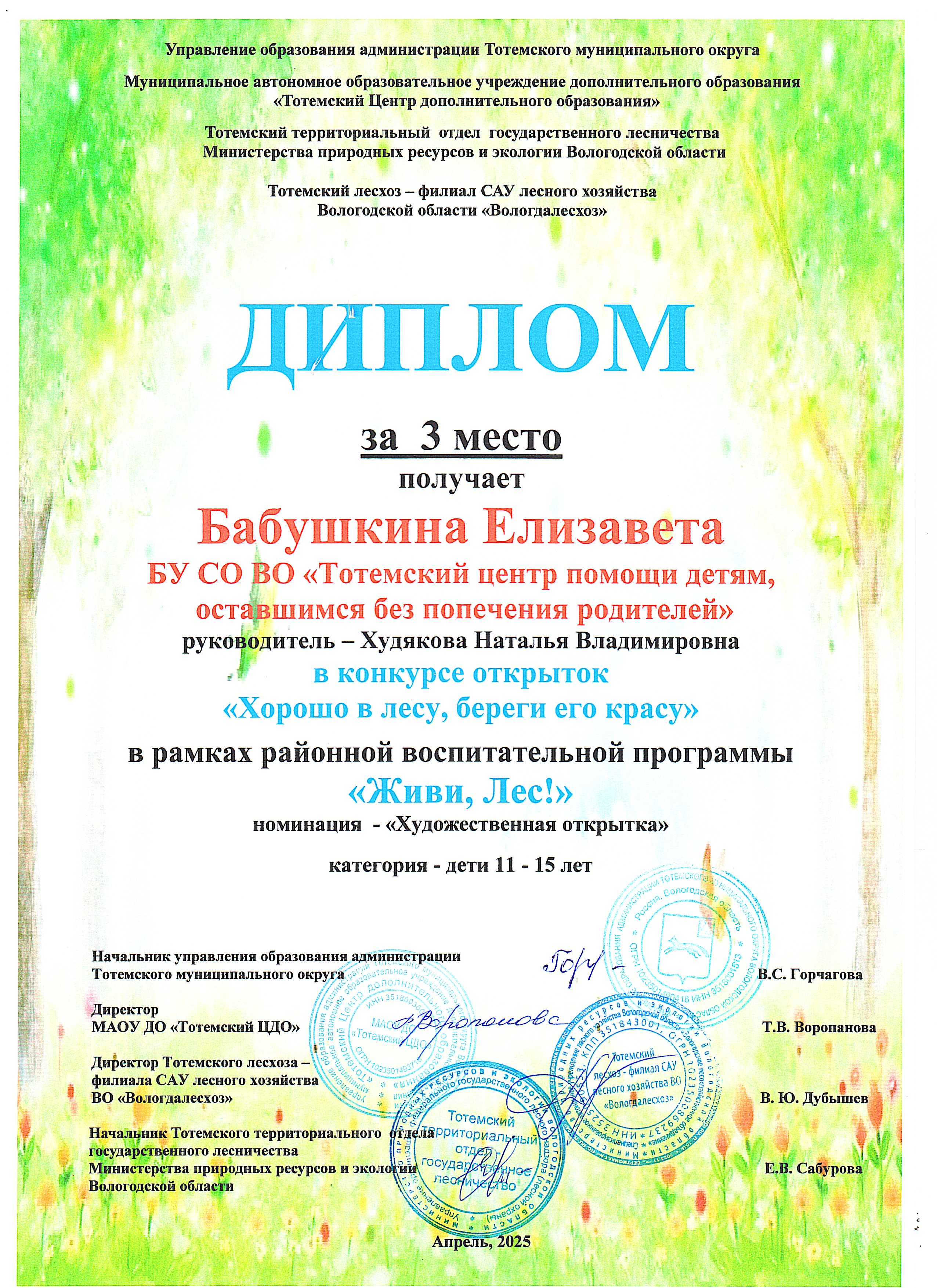 Районная воспитательная программа "Живи, Лес!" (апрель 2025 года)
