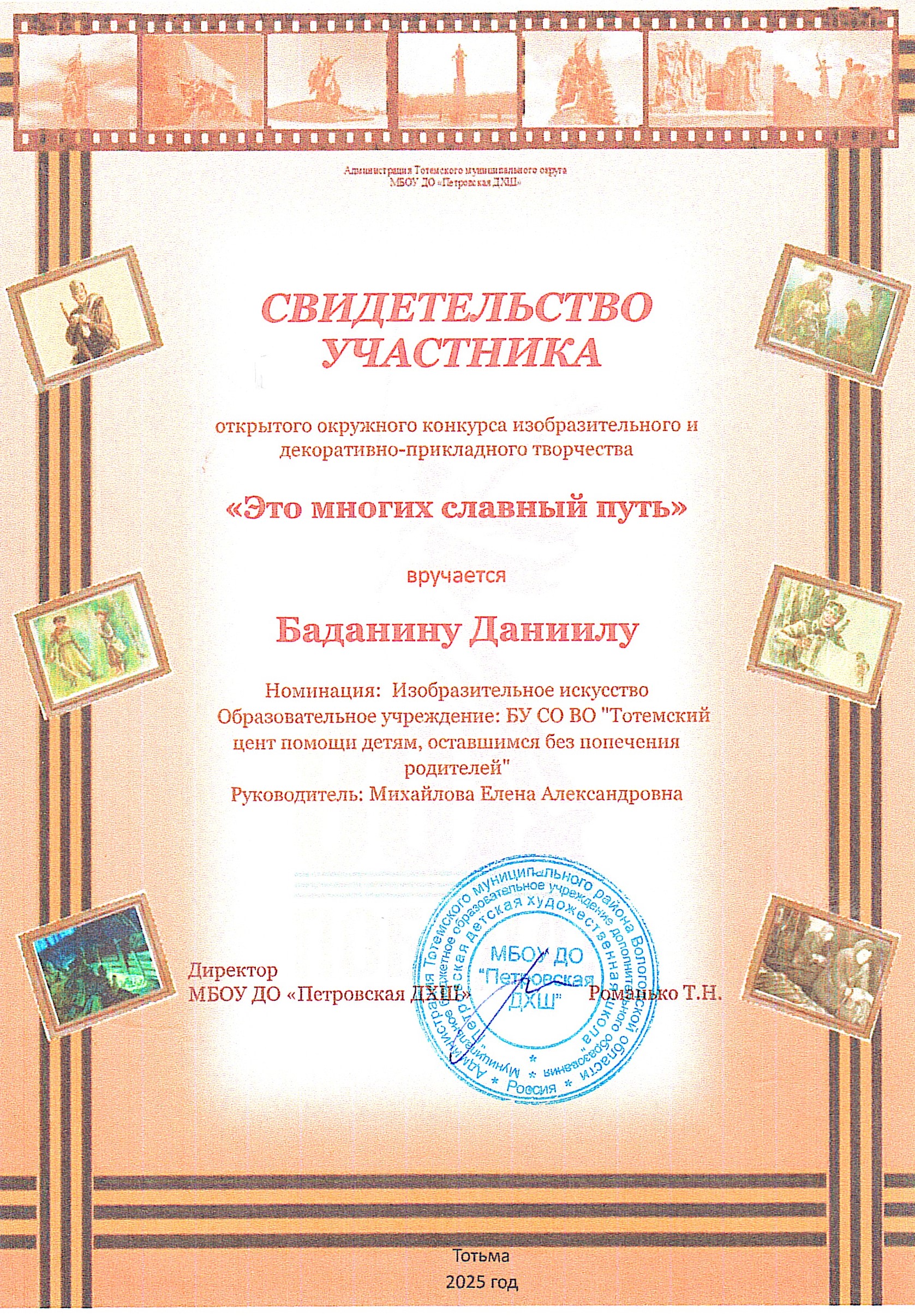 Результат участия в конкурсах педагогов и воспитанников БУ СО ВО «Тотемский центр помощи детям, оставшимся без попечения родителей»