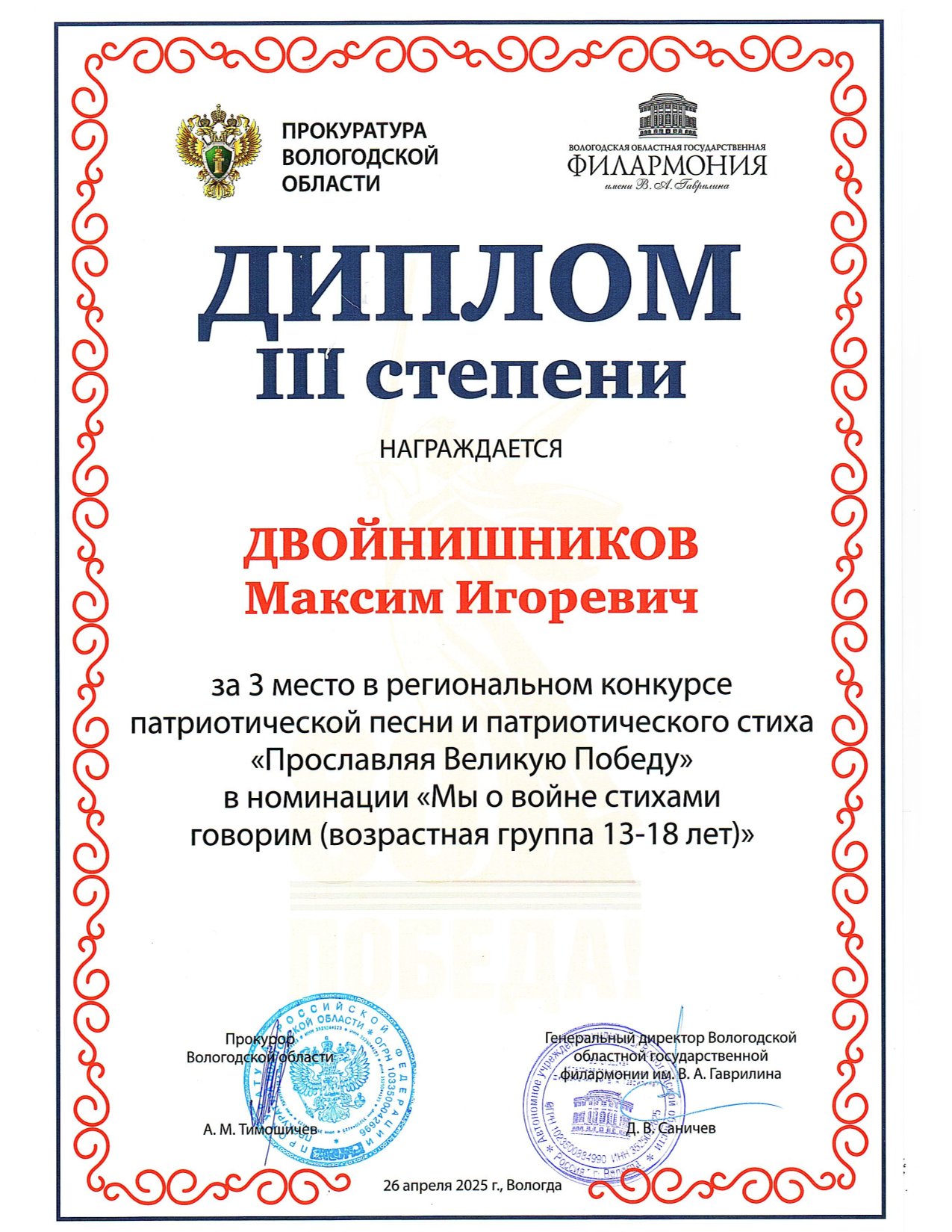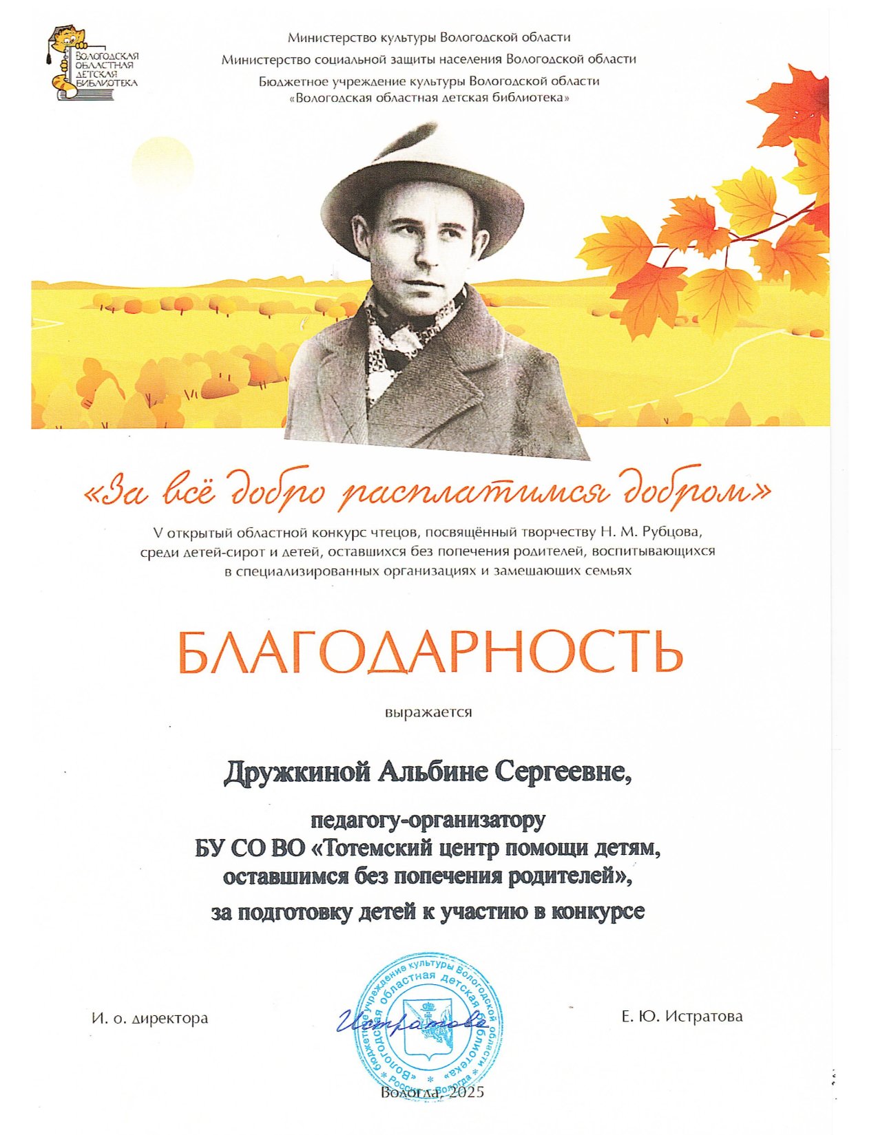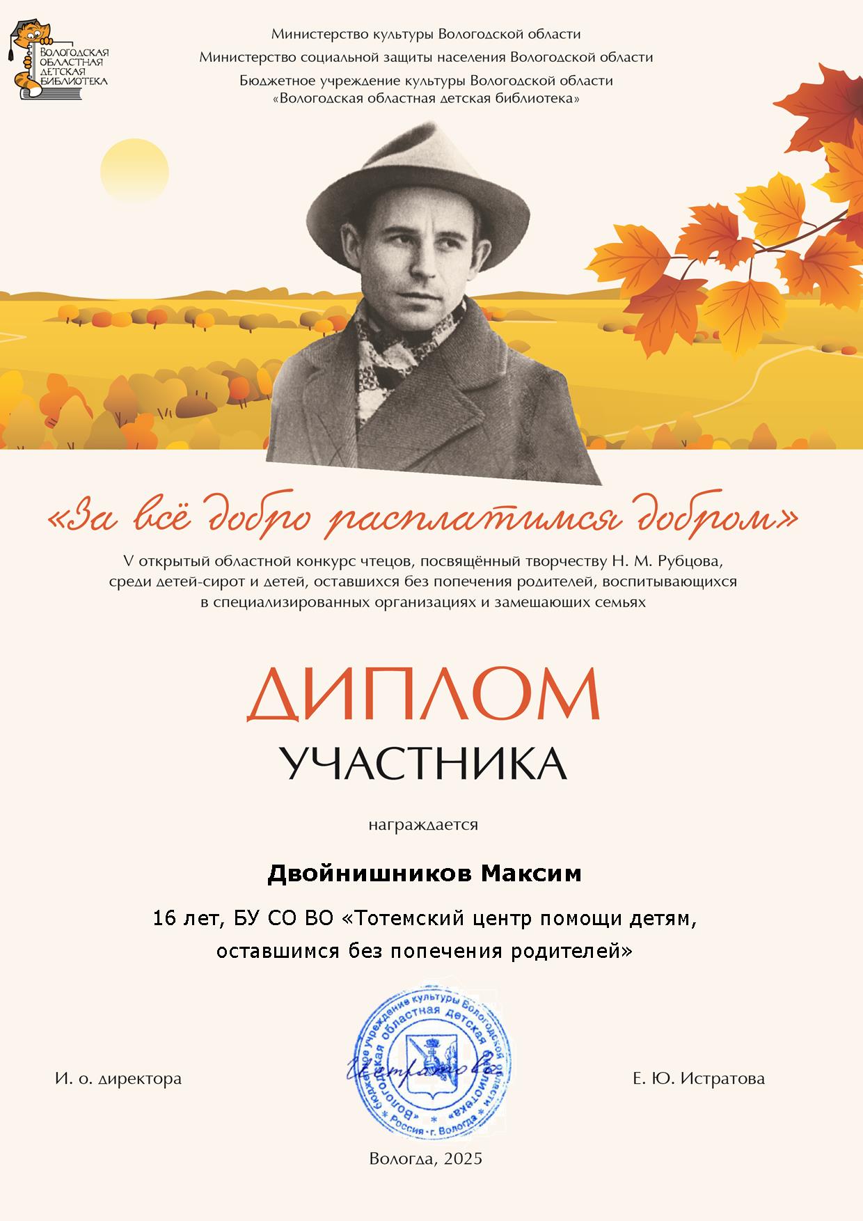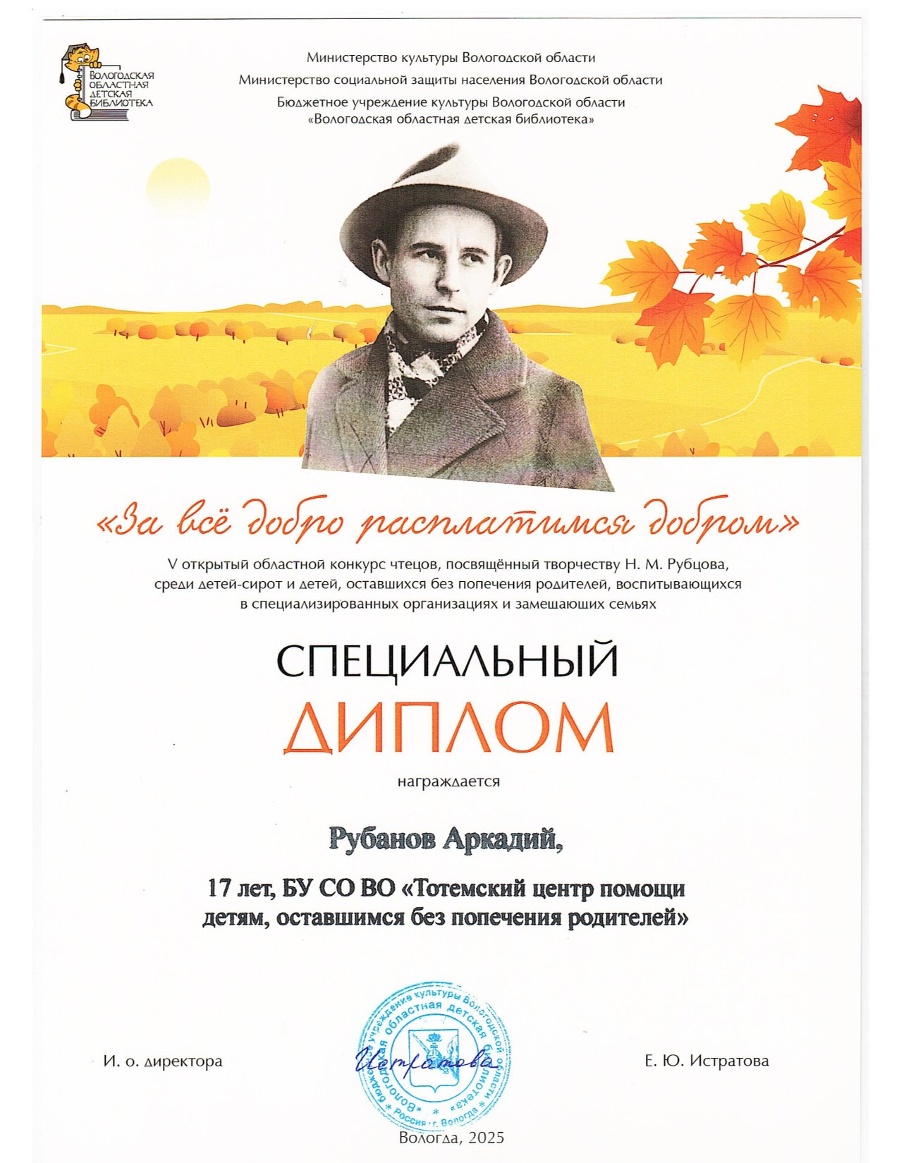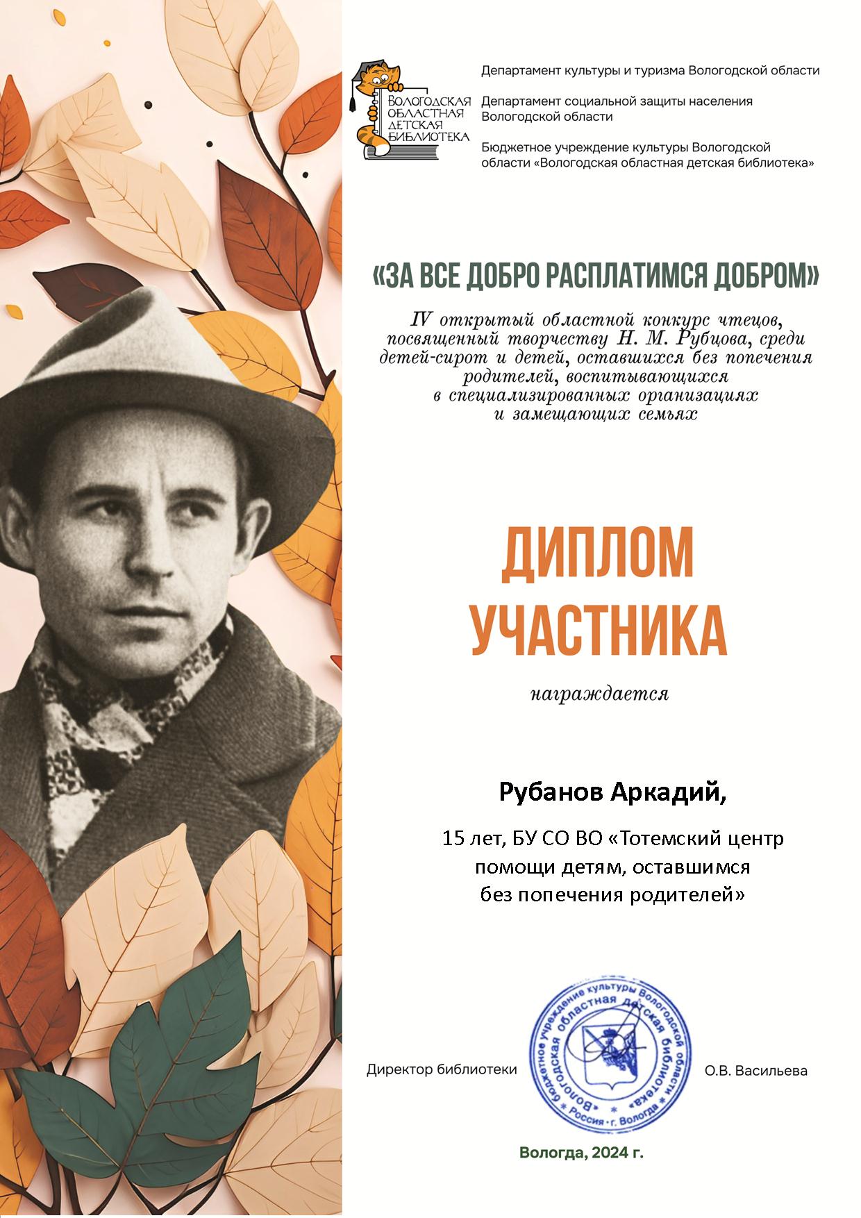 III открытый областной конкурс чтецов "За всё добро расплатимся добром" (Вологда, 2023 год)