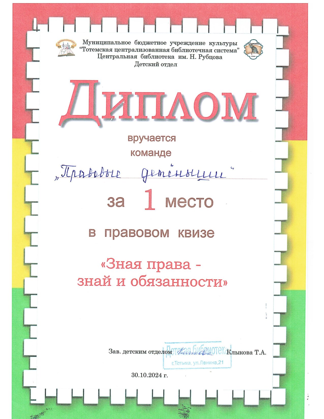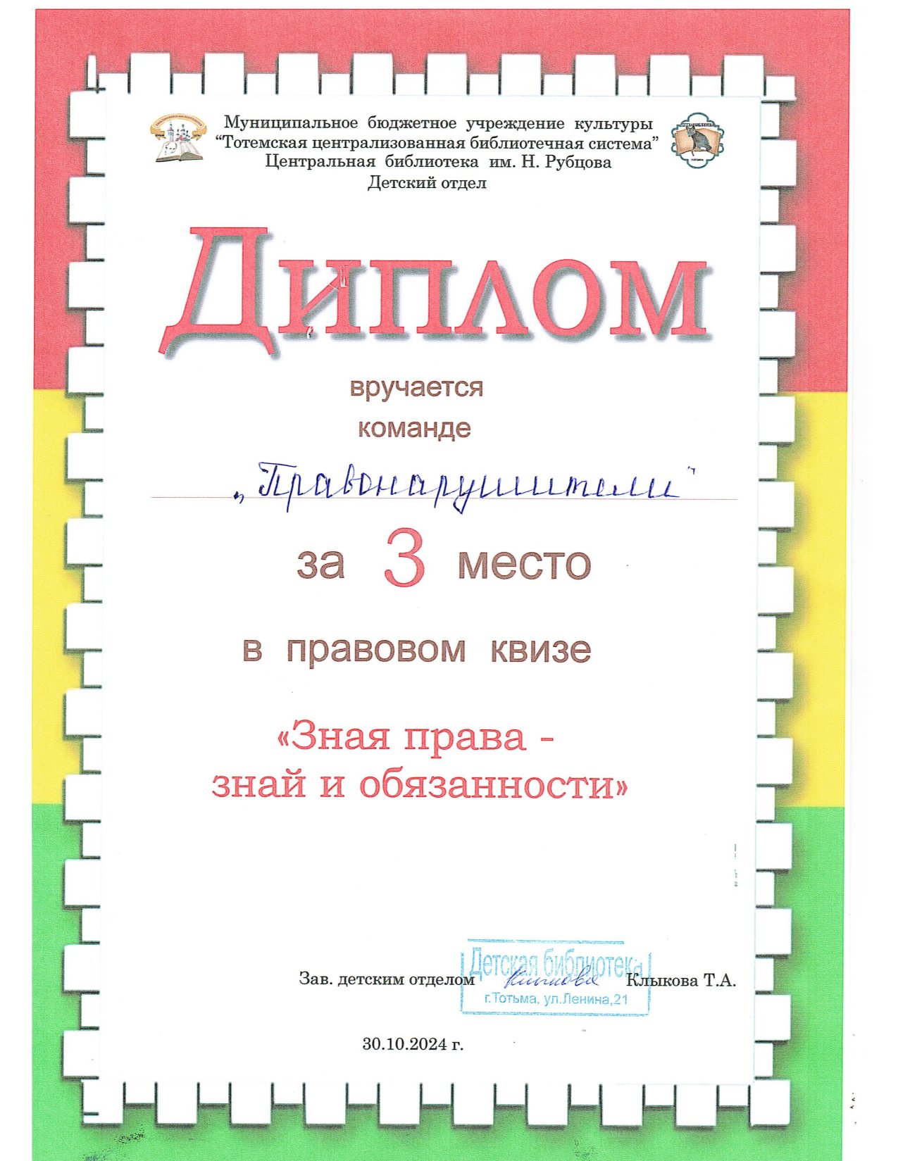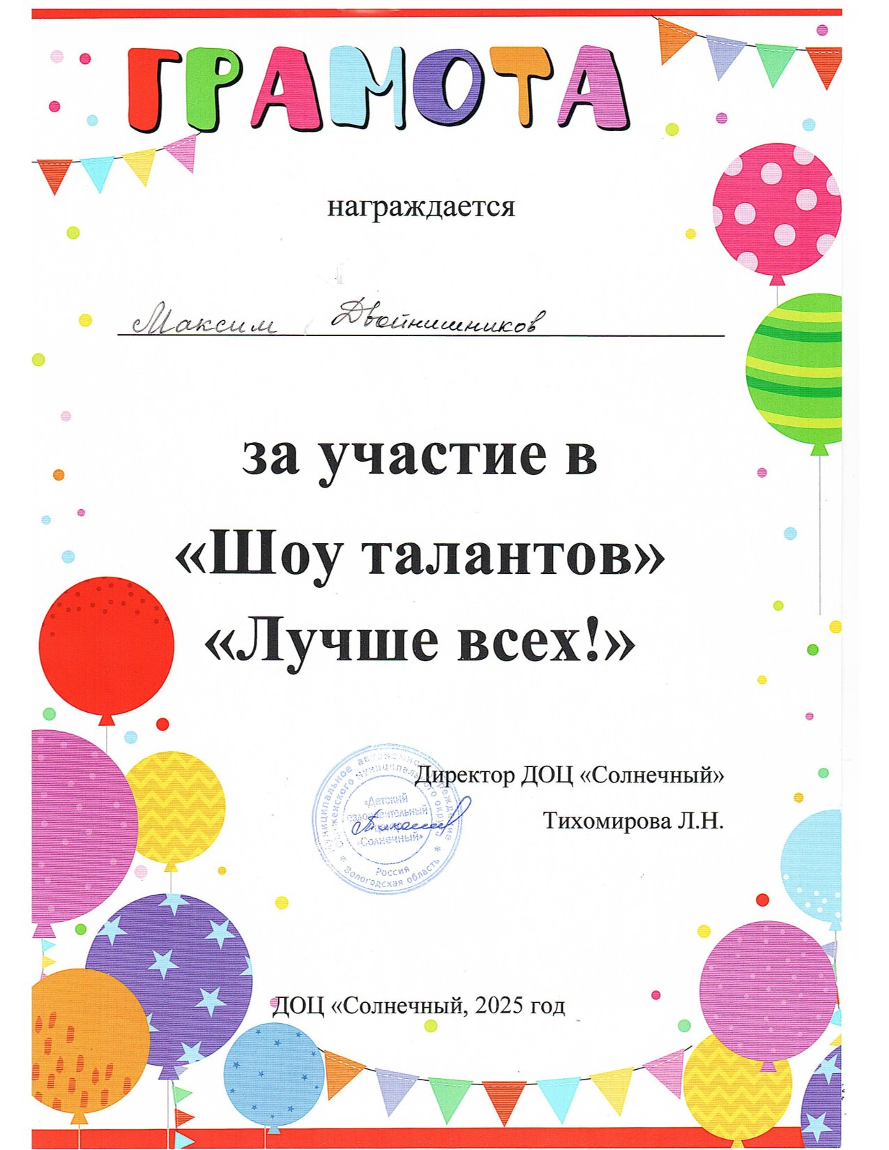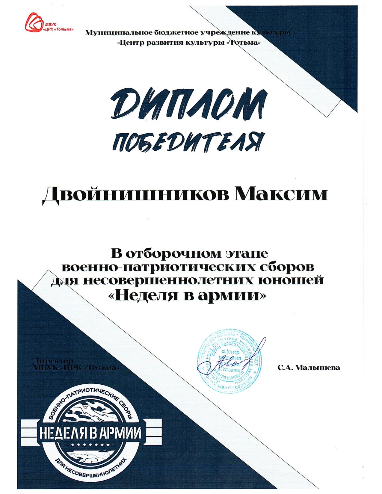 Дипломы: