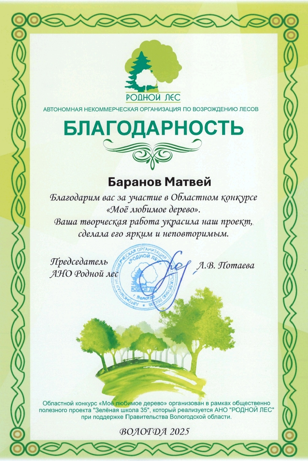 Областной конкурс "Мое любимое дерево" (Вологда, 2025)