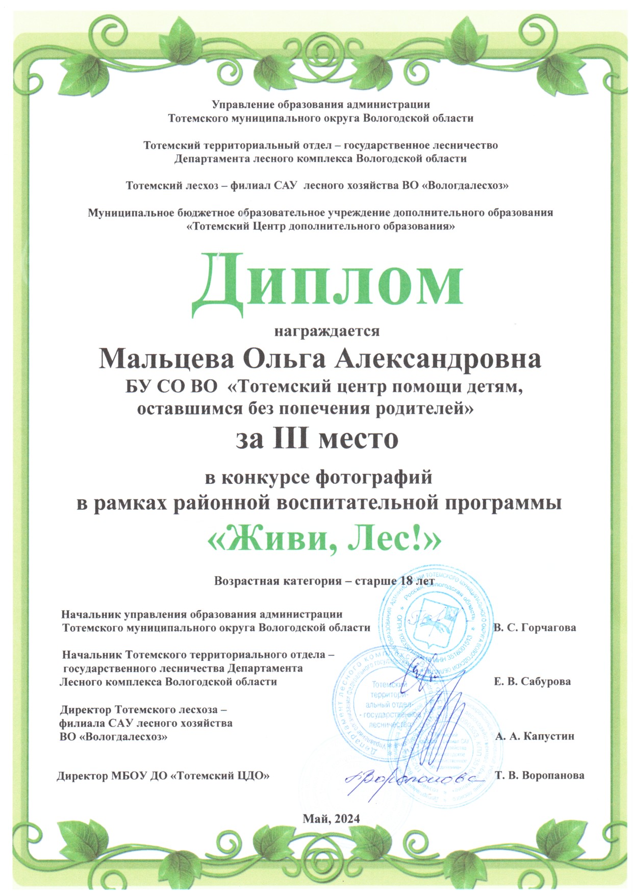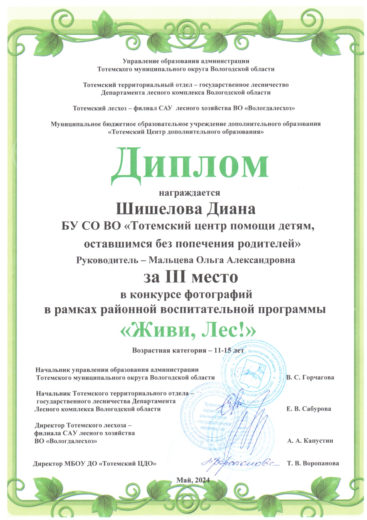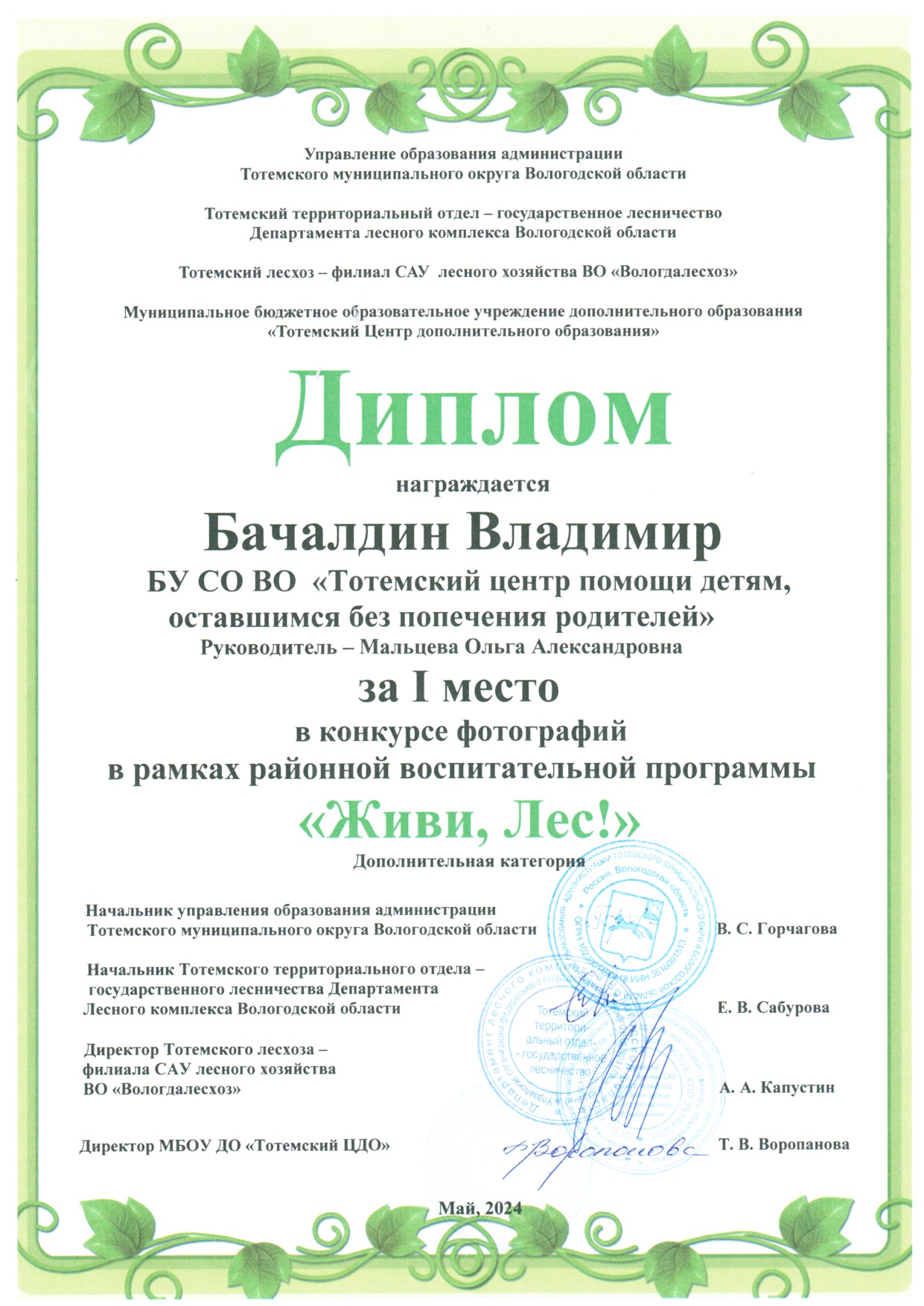 Конкурс фотографий в рамках районной воспитательной программы "Живи, Лес!" (май 2024 года)