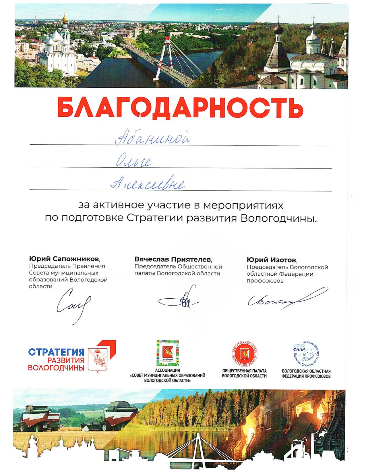 Благодарственные письма волонтерам 21.12.2022