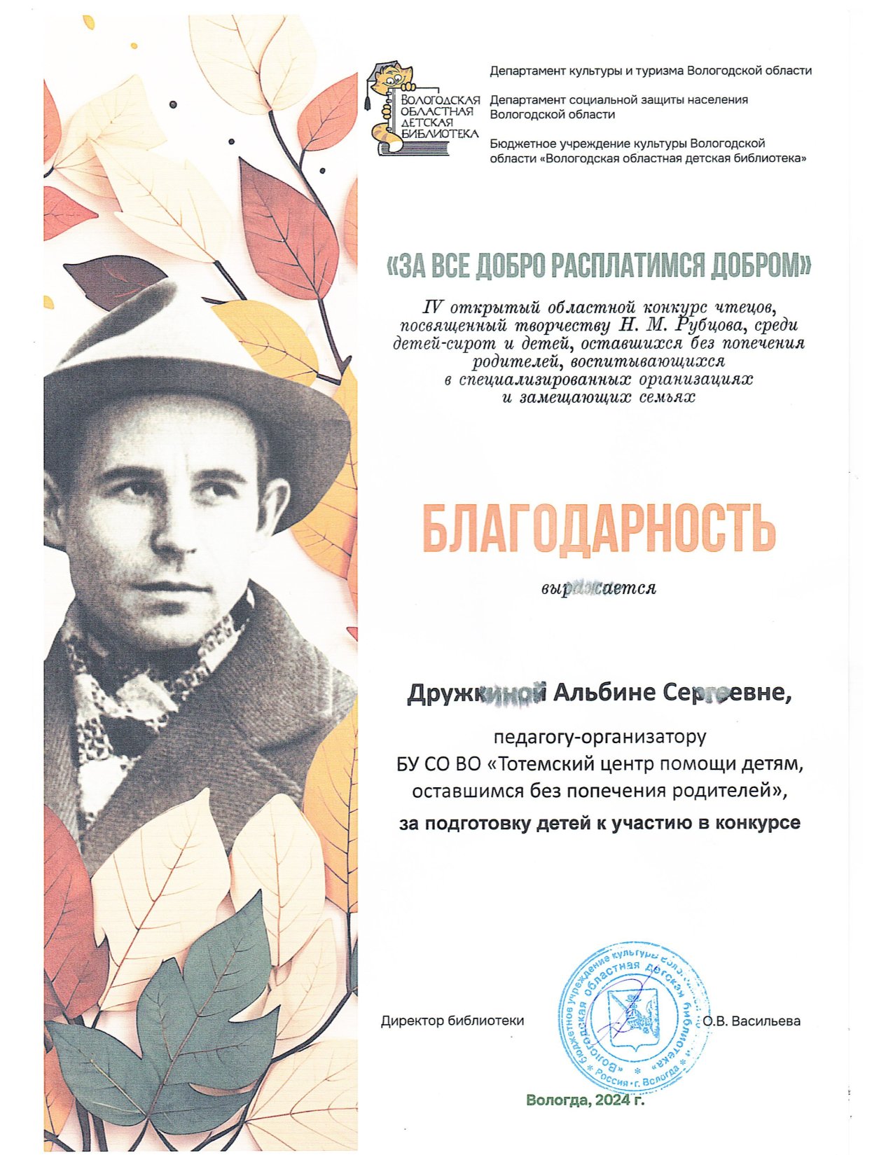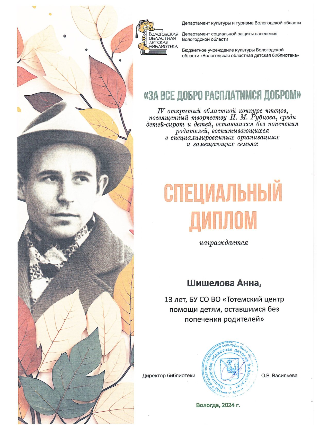 Областной заочный конкурс об успешных выпускниках всех форм попечения Вологодской области (2024 год)