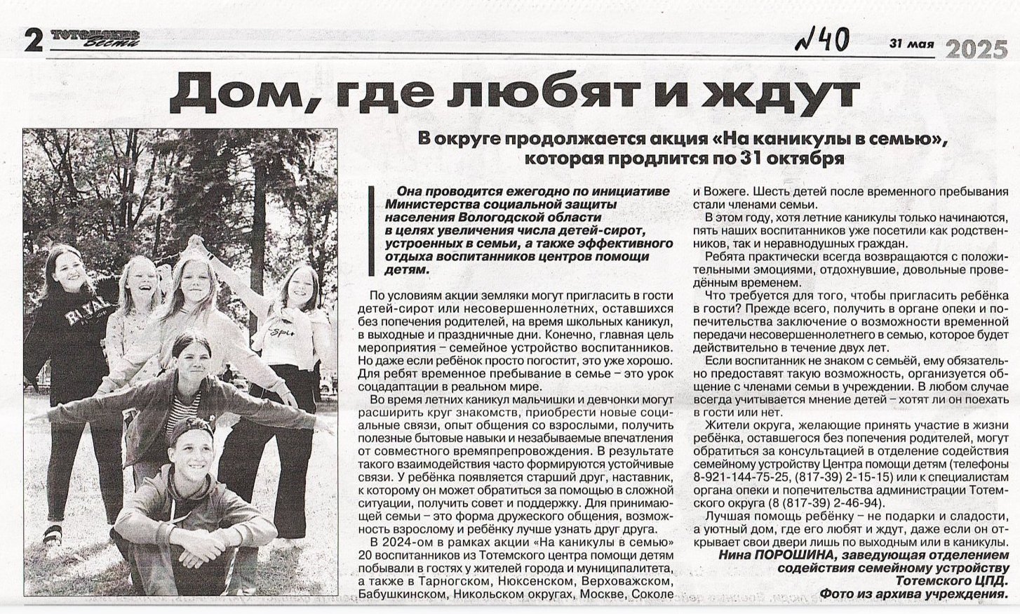 Тотемский центр помощи детям, оставшимся без попечения родителей